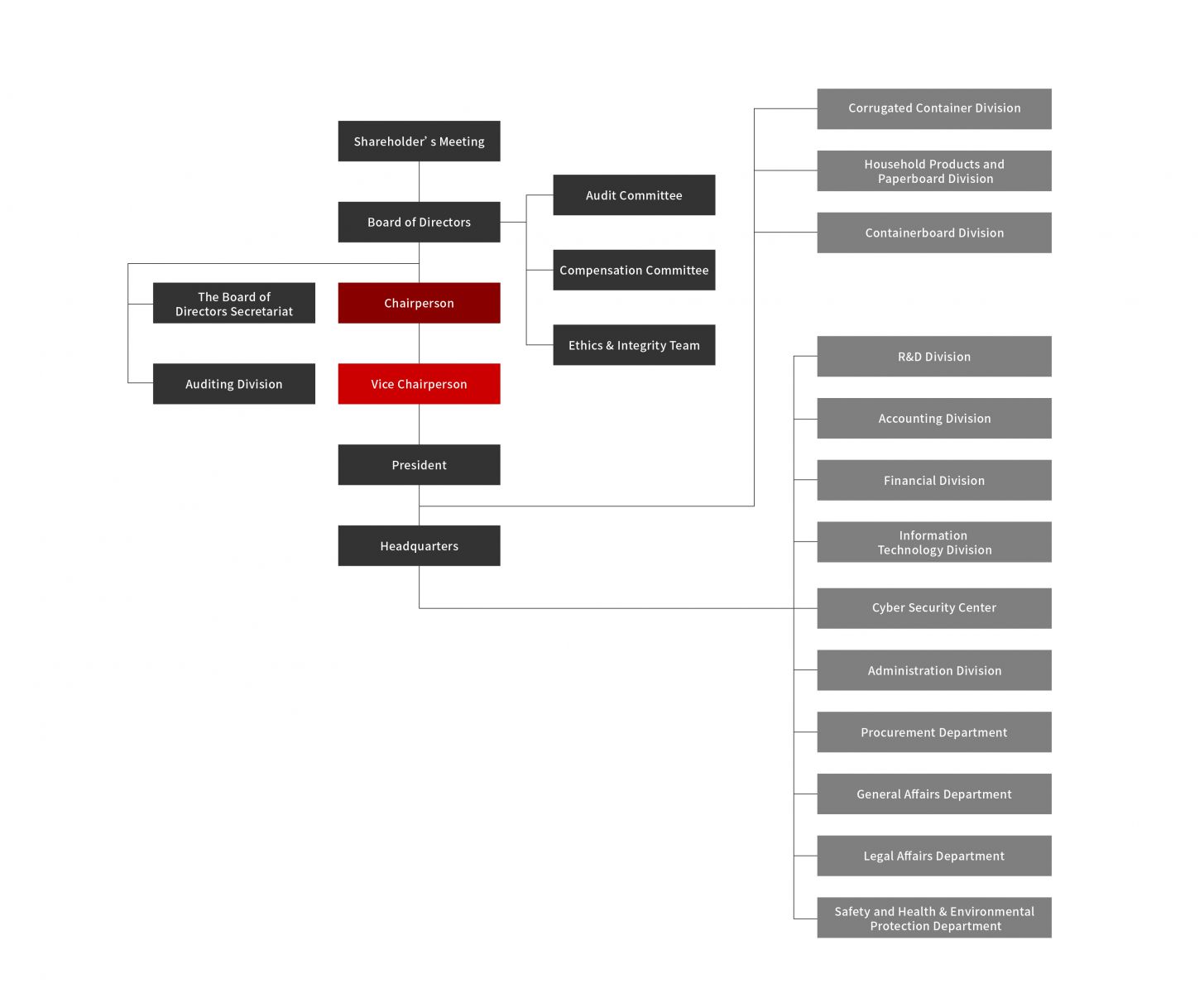 The Organization of CLC consists of four parts: Headquarters, Containerboard Division, Household Products & Paperboard Division and Corrugated Container Division. Besides, CLC also extends its business across the world. Every division not only has an independent production and sales system, but also cooperates with each other closely for a healthier and more sustainable market condition. Headquarters is responsible for overall planning with the coordination and integration of business and the long-term research and development.